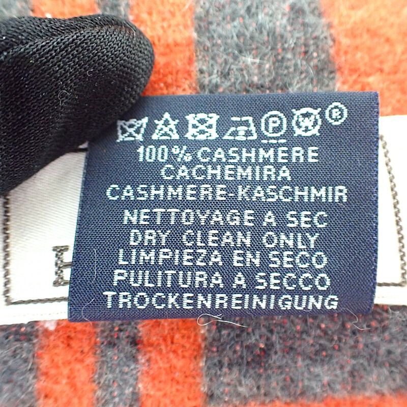 HERMES Brides de Gala 無秩序 マフラー カシミヤ オレンジ グレー ユニセックス