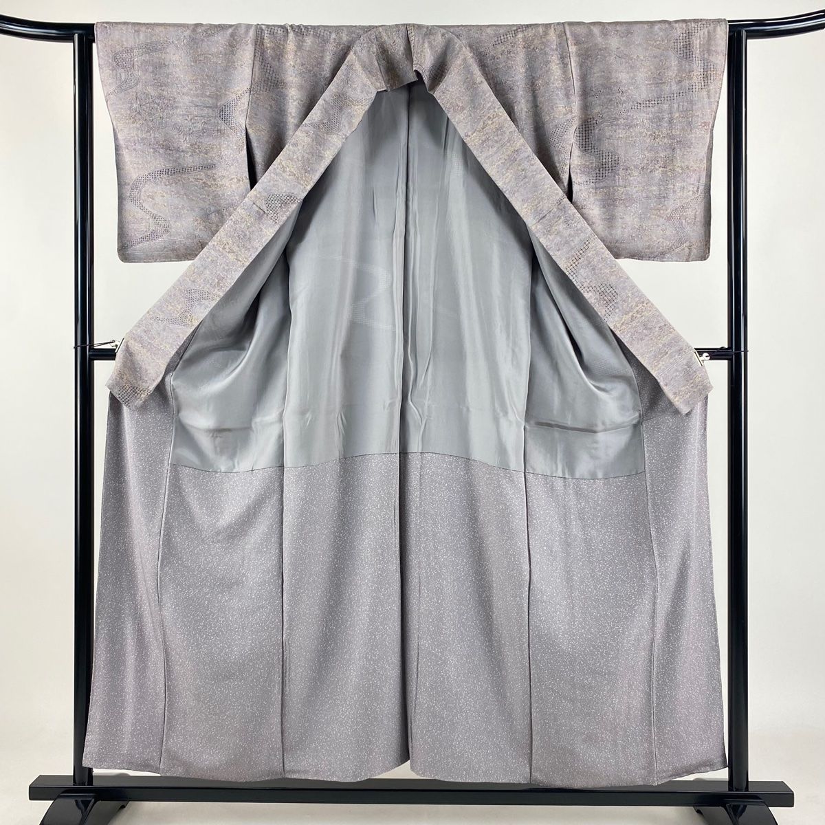 小紋 身丈156 cm 裄丈61 S 袷 華文 流水 刺繍 灰紫 正絹