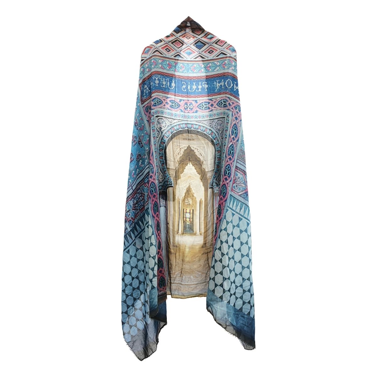 Faliero Sarti ファリエロサルティ Massimo Listri グラフィックプリントフリンジストール ブルー系×マルチ