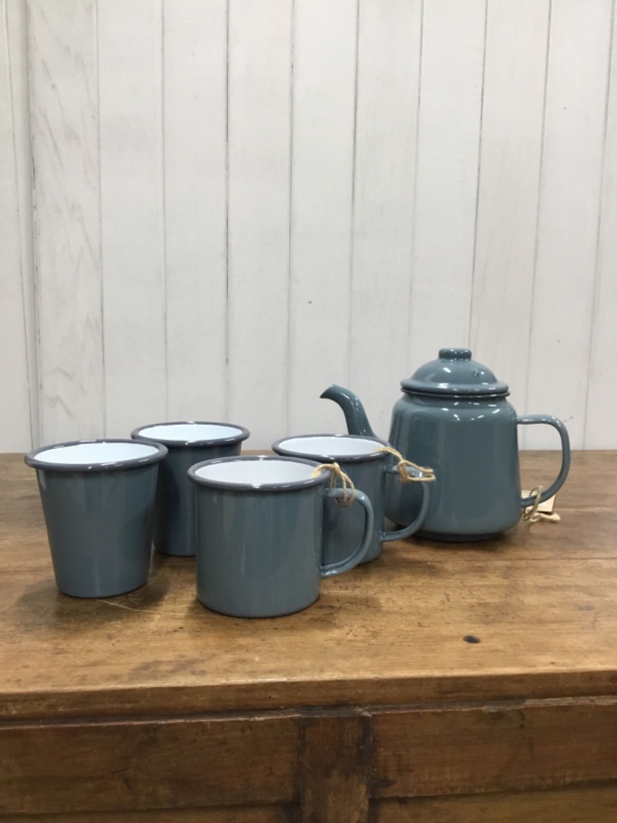 イギリスで愛される、スタンダードな琺瑯のポット・マグカップ・タンブラーです。