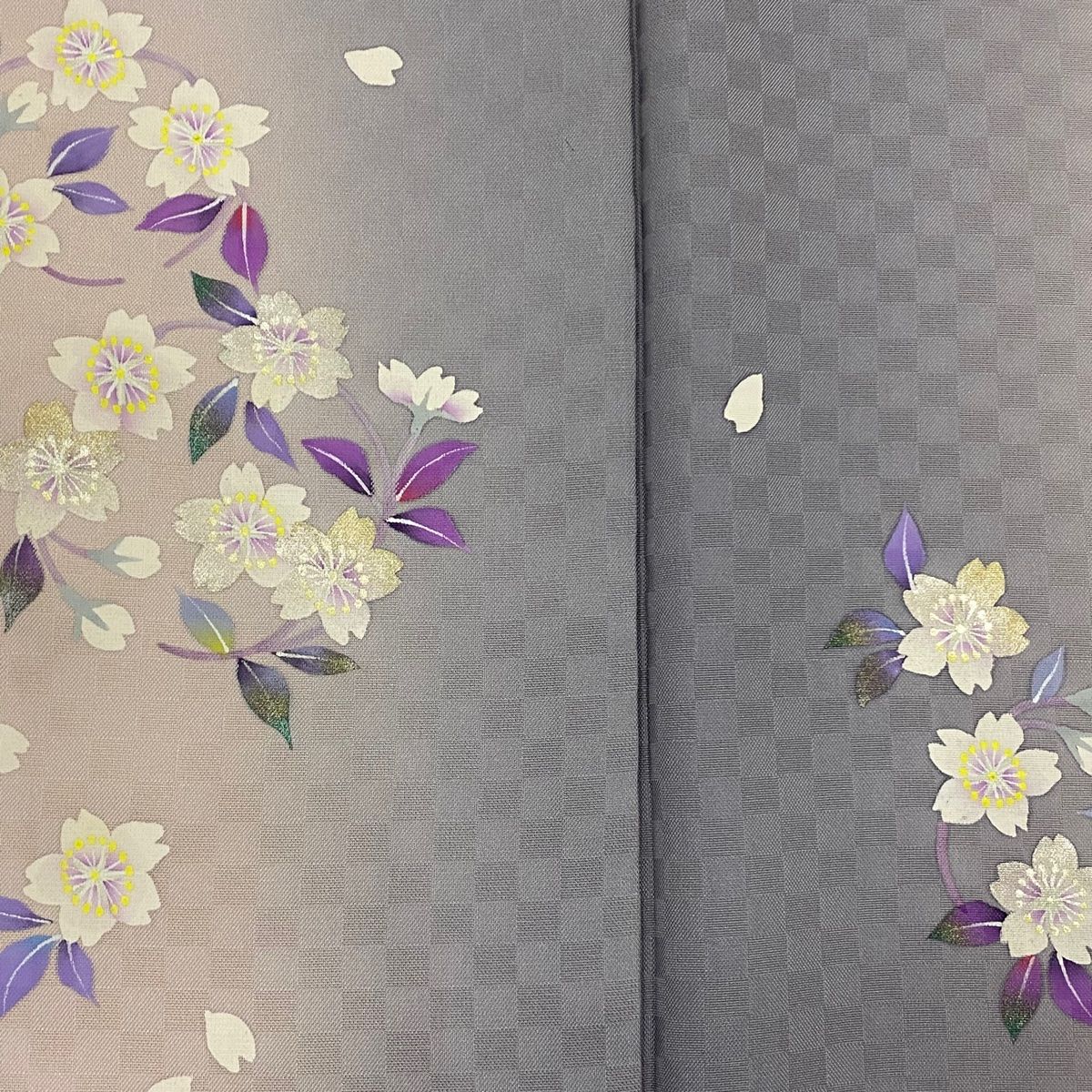 付下げ 身丈155 cm 裄丈61 S 袷 桜 花びら 金銀彩 ぼかし 青灰色 正絹